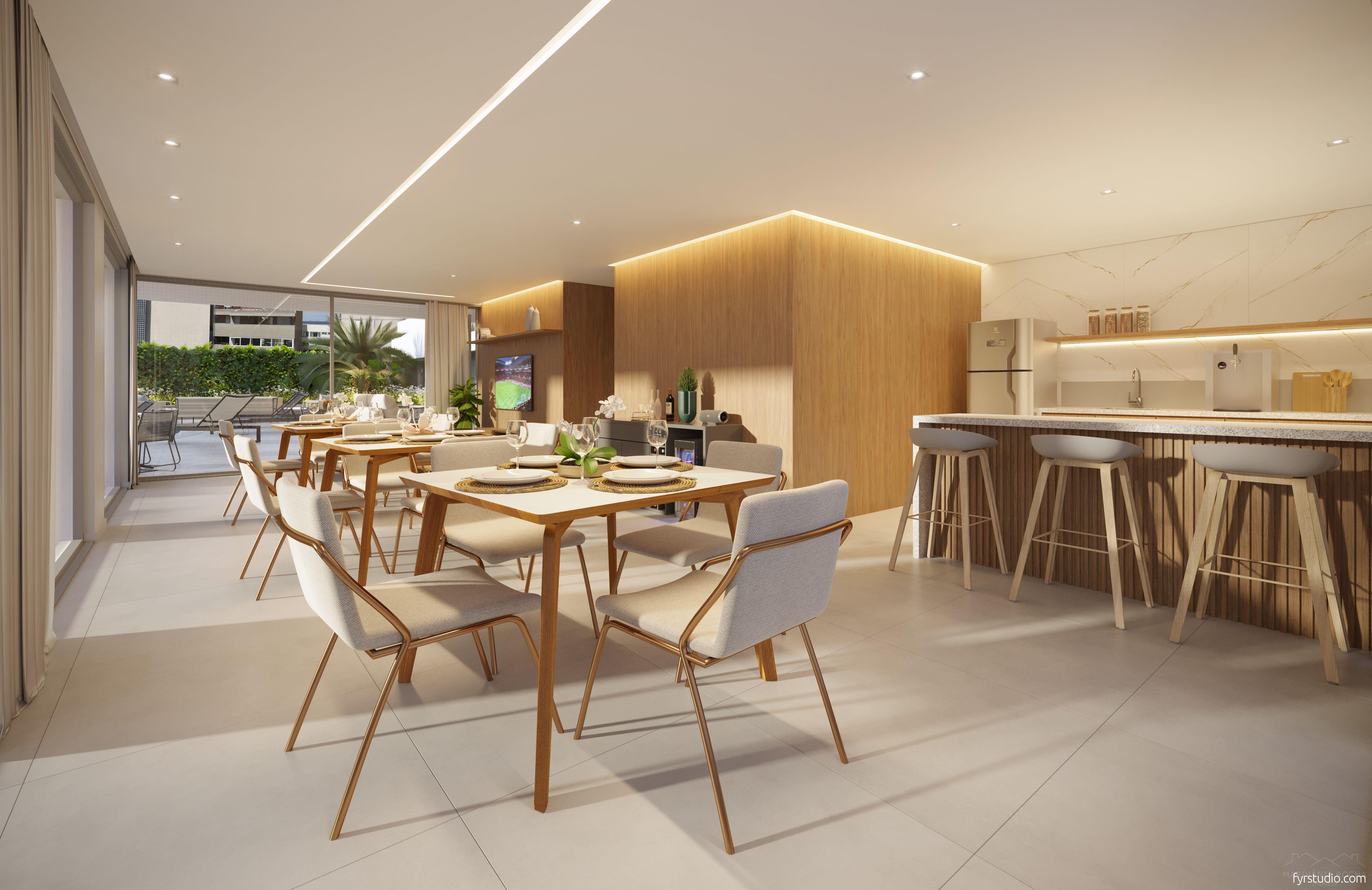 O empreendimento oferece design moderno, fachada com pastilhas, sacadas com vidro, armários individuais nas garagens e cozinha gourmet integrada.