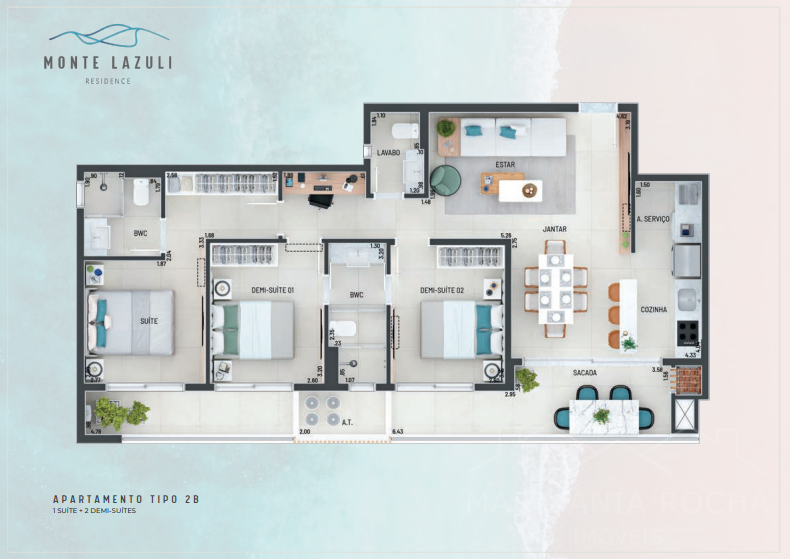 Opcional 2 demi-suítes + 01 suíte com 100, 102 e 111m² privativos