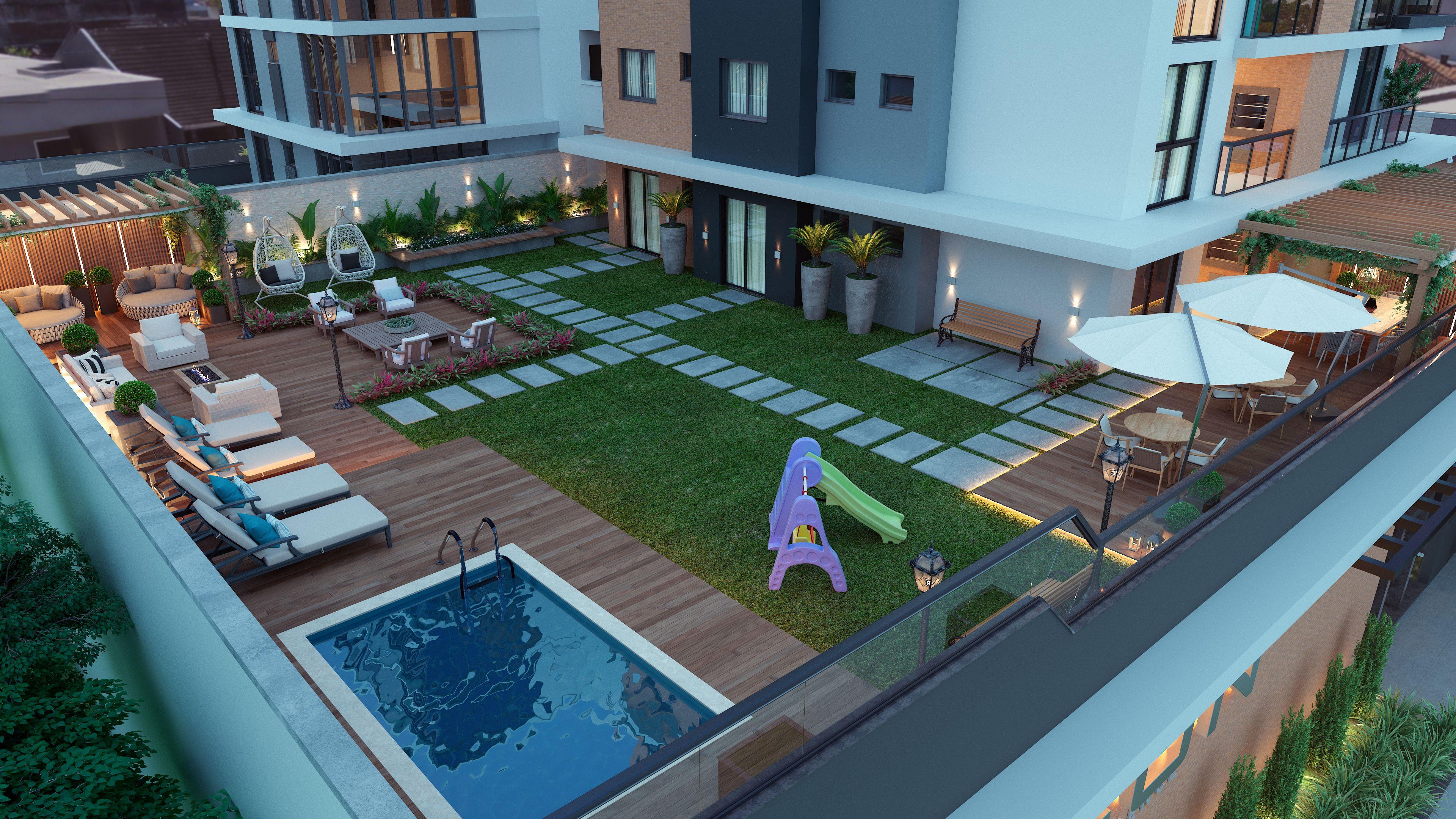 Área de Lazer Completa com salão de festas, espaço kids, espaço game, espaço fitness, quiosques e uma piscina com borda infinita.